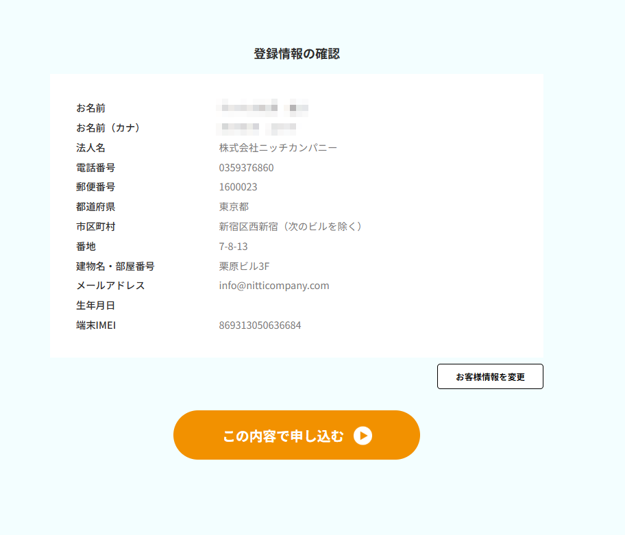 ⑥ 登録内容にお間違いがないかご確認の上、「この内容で申し込む」をクリックしてください。