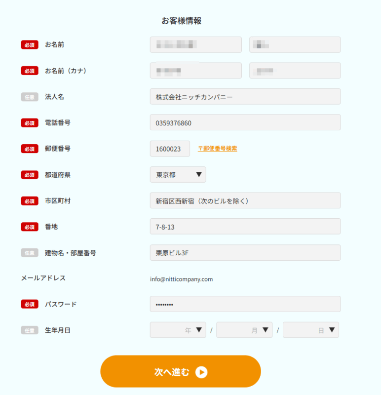 ⑤ お客様情報をご入力いただき、パスワードを設定してください。