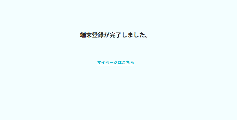 ⑦ 「端末登録が完了しました」と表示されたら、画面下部の「マイページはこちら」をクリックしてください。
