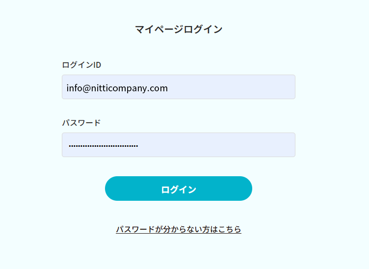 ⑧ ログインIDにはご登録のメールアドレスを、パスワードには⑤で設定したものをご入力のうえ、「マイページ」にログインしてください。